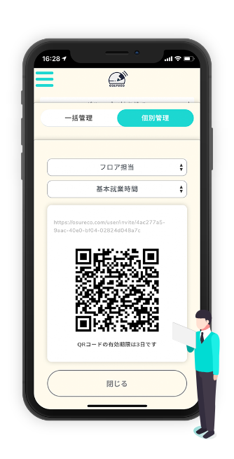 | 管理者は招待するだけで スタッフが各々登録 |