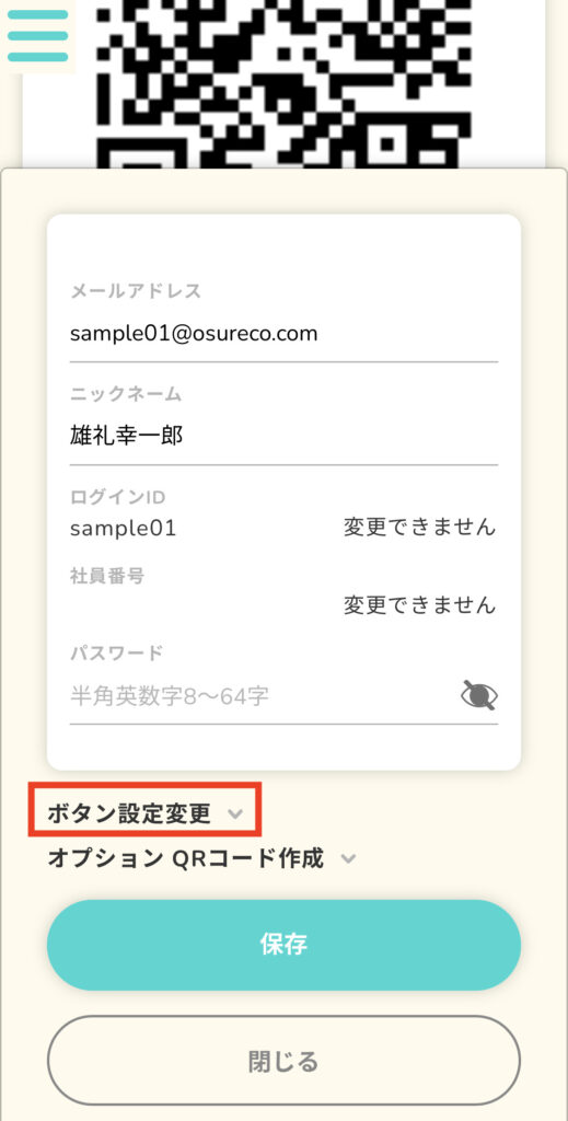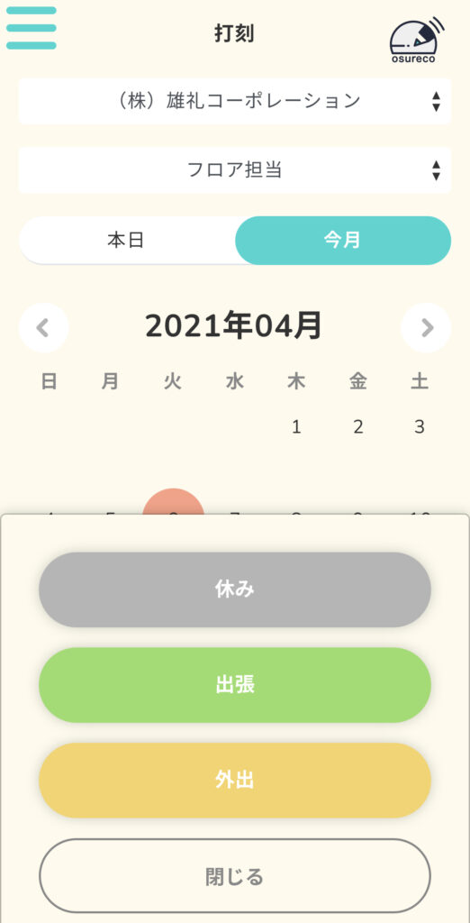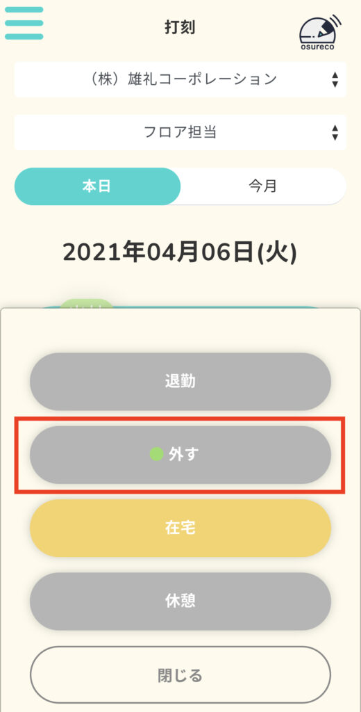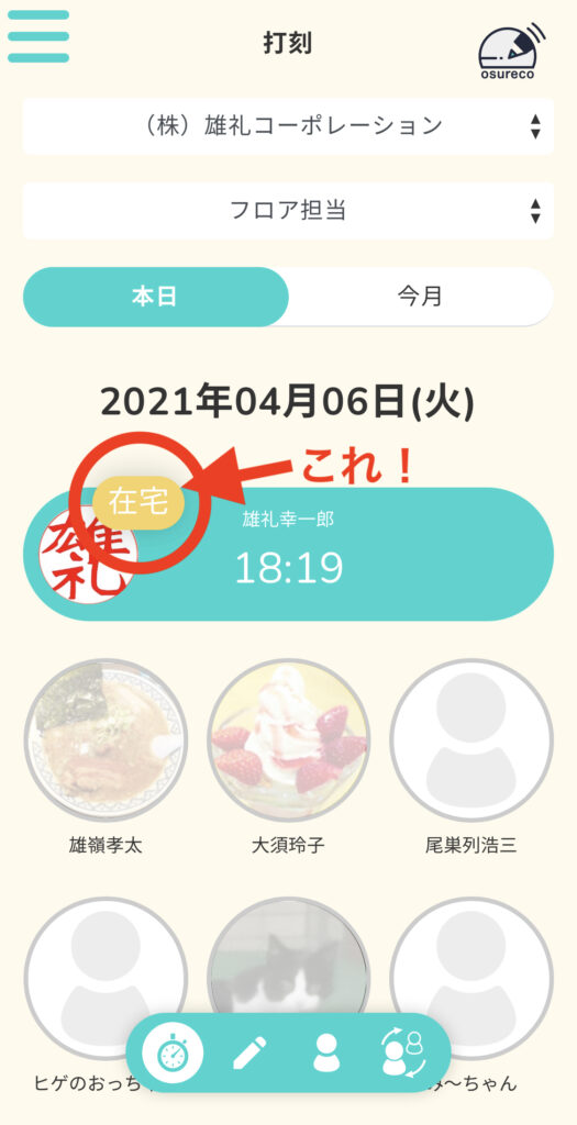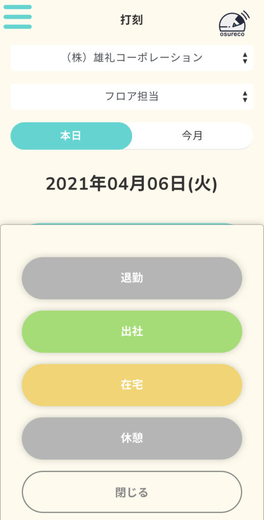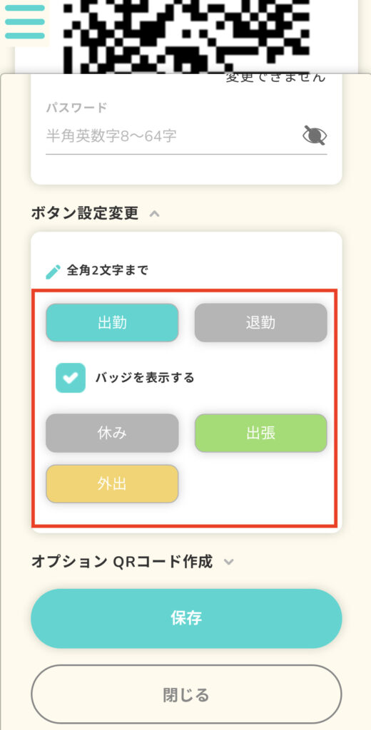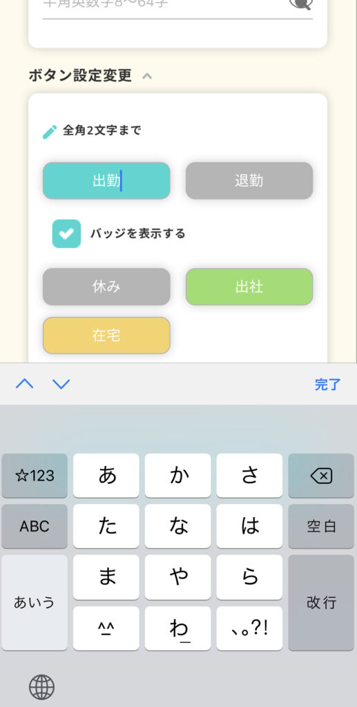 打刻画面で表示されるボタンとボタンに表示されるバッジを好きな文字に編集する方法です。