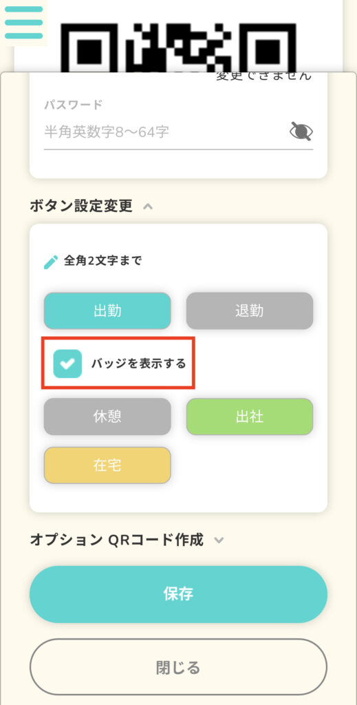 チェックを外すと打刻画面でバッジボタンは表示されません。