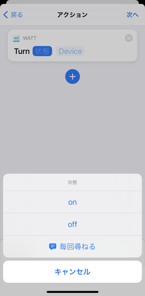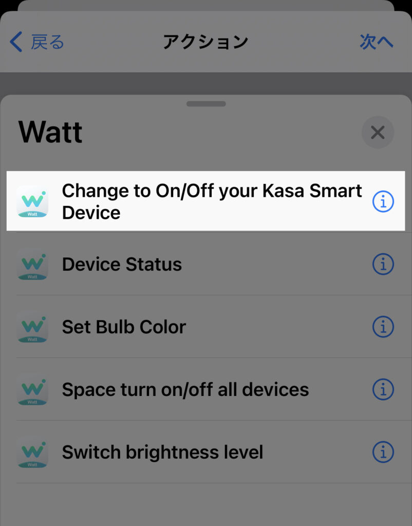 実行出来るアクションの一覧が出てきます。今回はコンセントのOn/Offなので