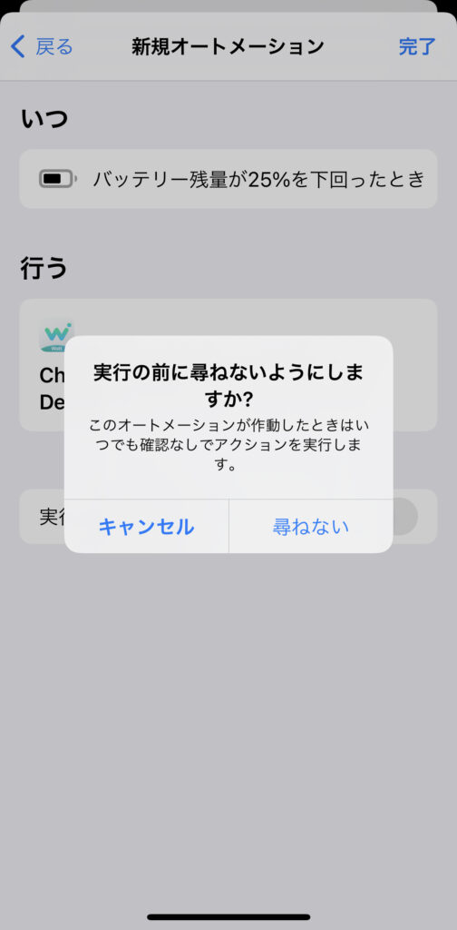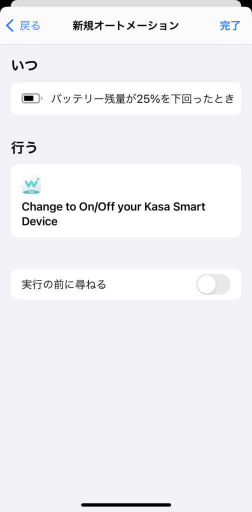 これで、このスマートプラグに充電器を接続したiPhone、iPadはバッテリー残量の状態に応じて自動でOn/Offしてくれるようになります。