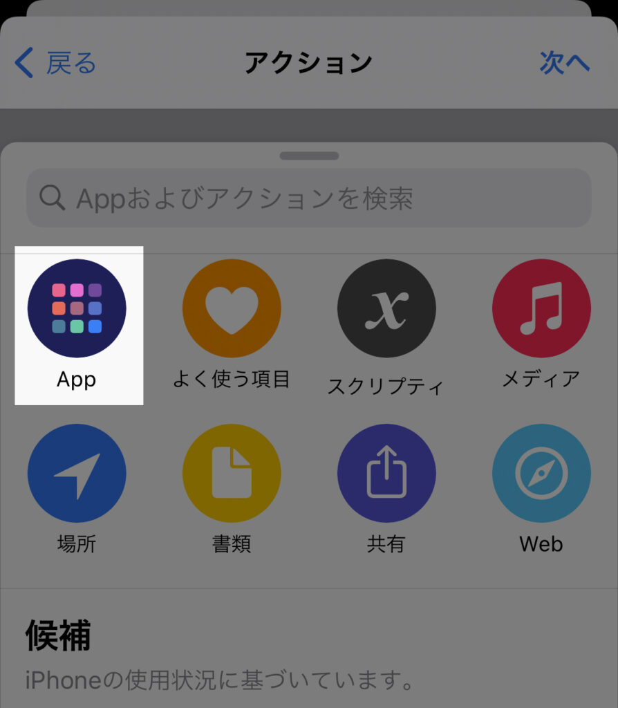 Appがあるのでこれを押すとショートカット対応アプリ一覧が表示されます。