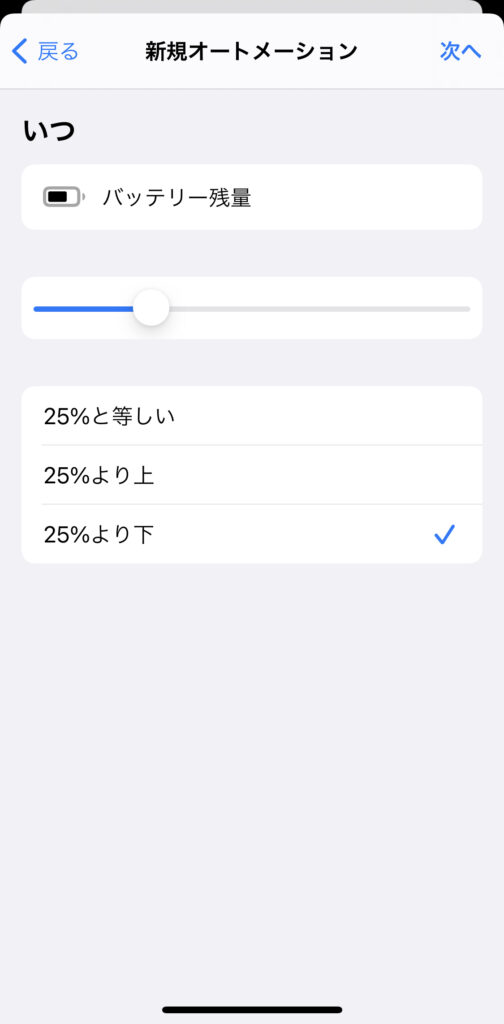 25%を下回ったときにどうするか、なので「on」を選びます。