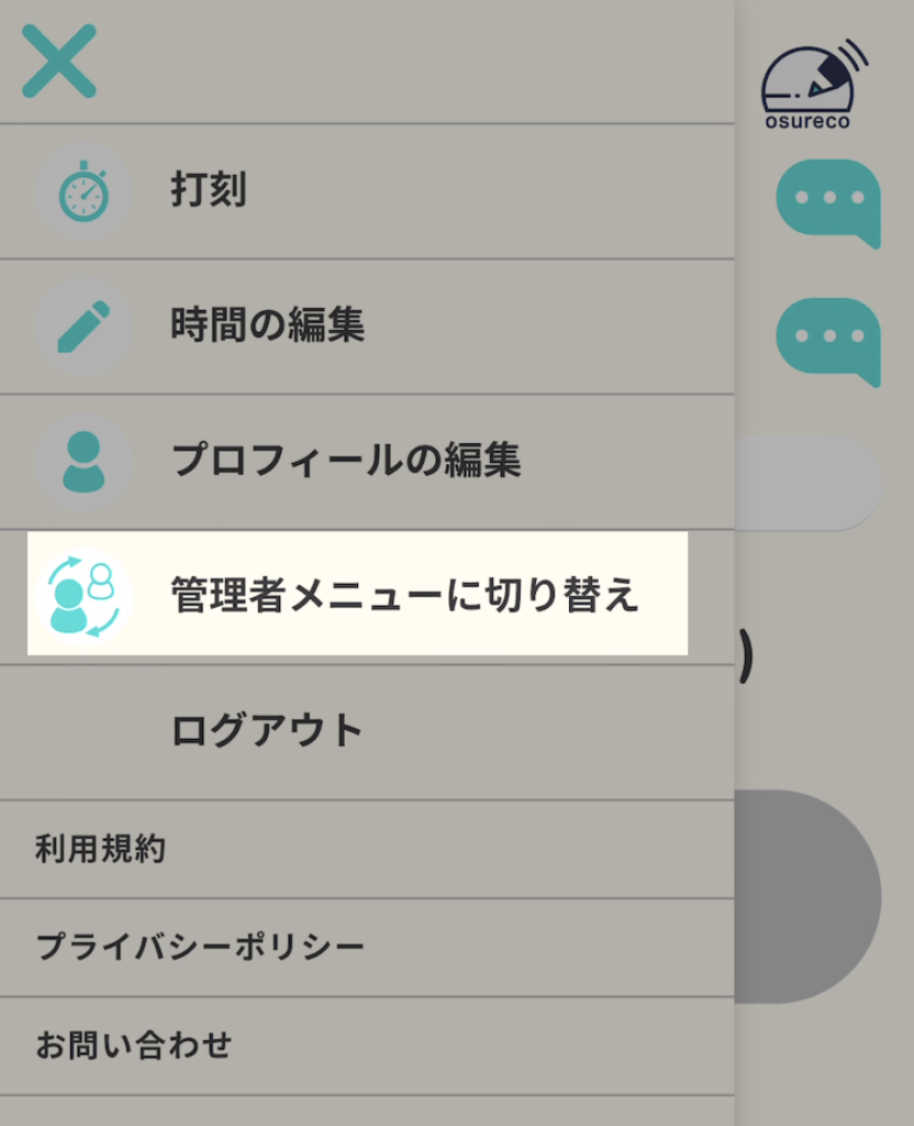 管理者はメニューから