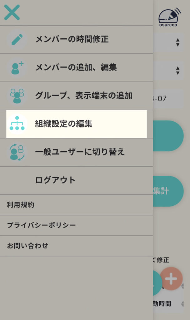 左上メニューの中の組織設定の編集をタップします。