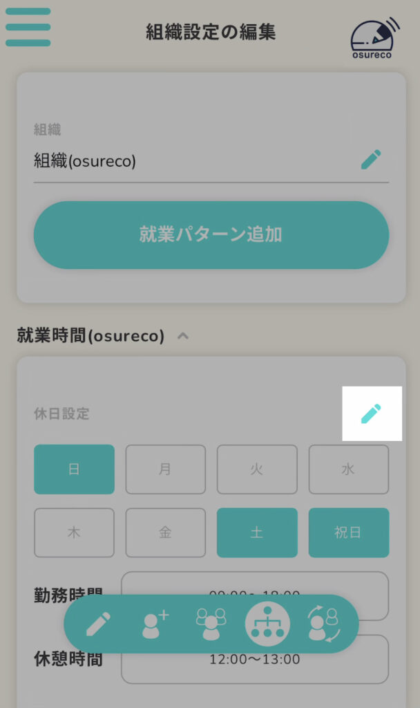 就業パターンの編集ボタンを押します。