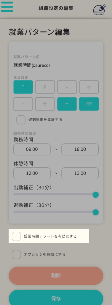残業時間アラートを有効にする