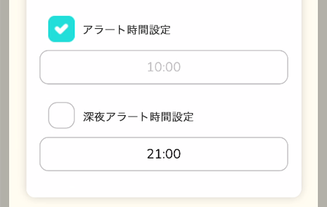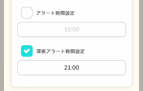 「深夜アラート時間設定」のみ有効にすることも可能です。