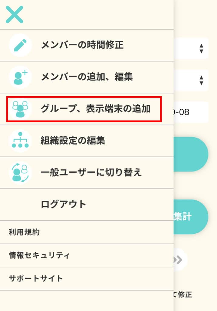 自分の初期画面に勤怠状況が一緒に表示されるグループになります。