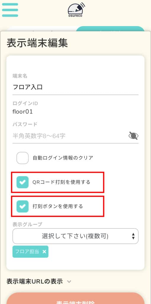 共有端末の名前やログインIDを変更したりするパスワードを再設定する画面が表示されます。