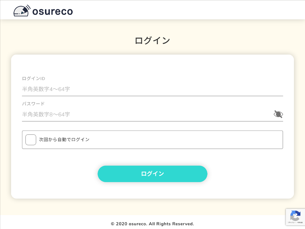 共有端末設定で設定したログインIDとパスワードを入力します。