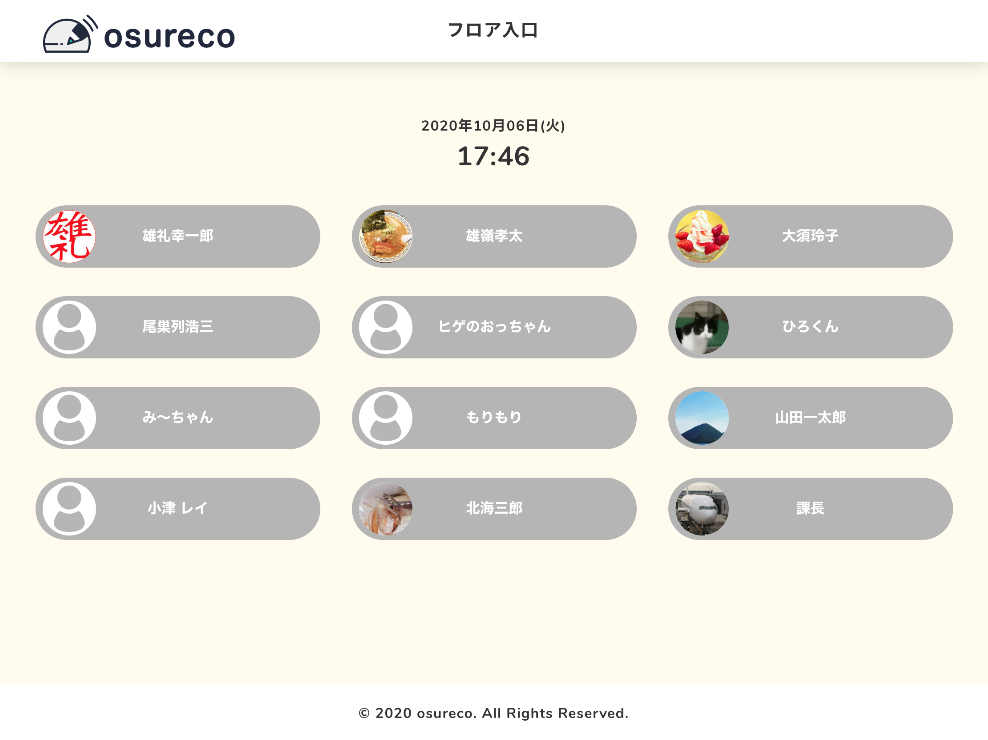 共有端末とは入口付近にタブレットやPCを設置して、来た時にみんながボタンを押せるようにした端末のことです。