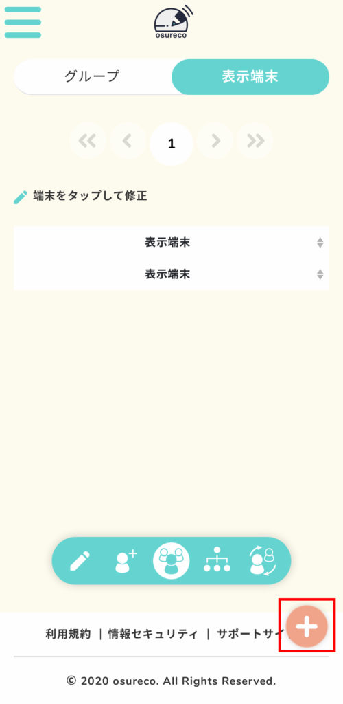 表示端末が何も無いので、右下のプラスアイコンを押します。