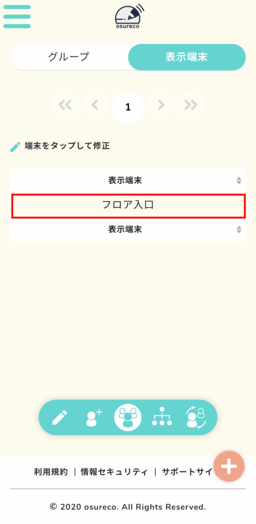 表示端末一覧に先ほど設定したものが表示されますので、これを押します。