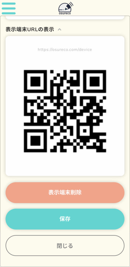 URLとQRコードが表示されるので