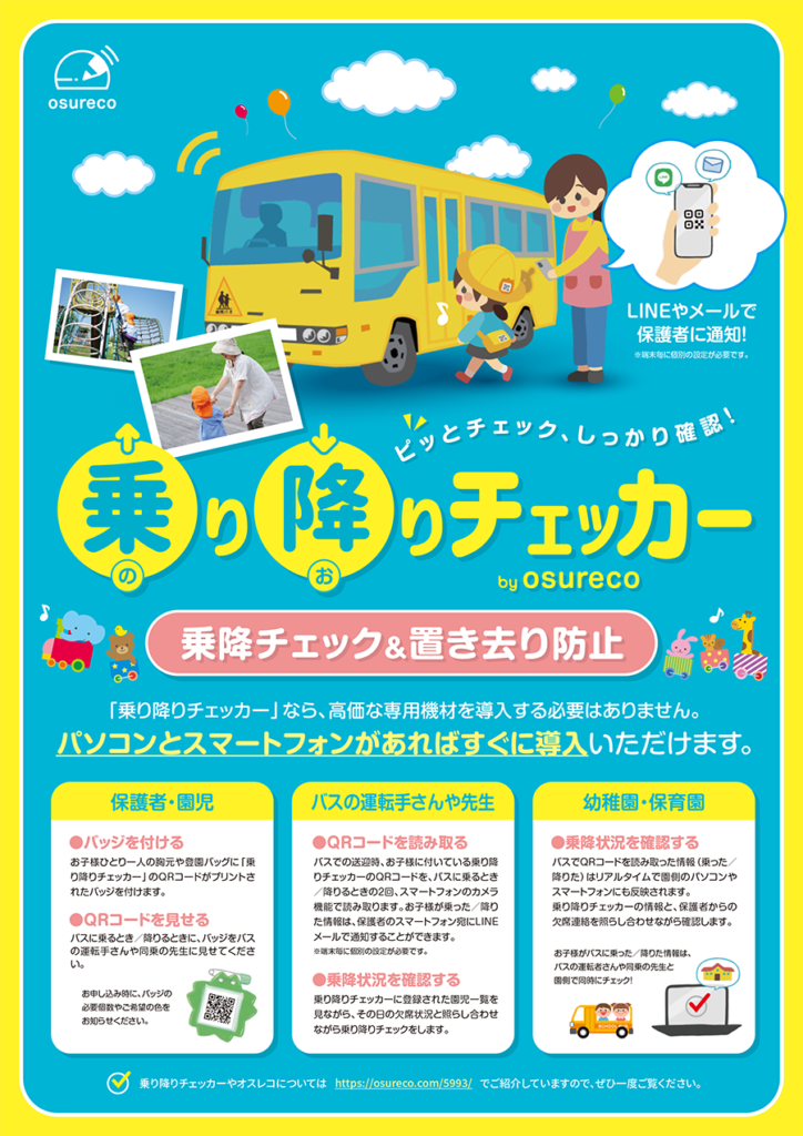 【ニュースリリース】置き去り防止に!「乗り降りチェッカー by osureco」の提供を開始しました。無料お試しモニター園も同時募集