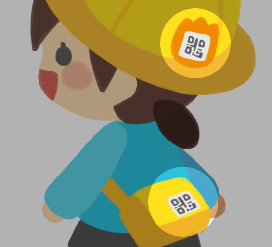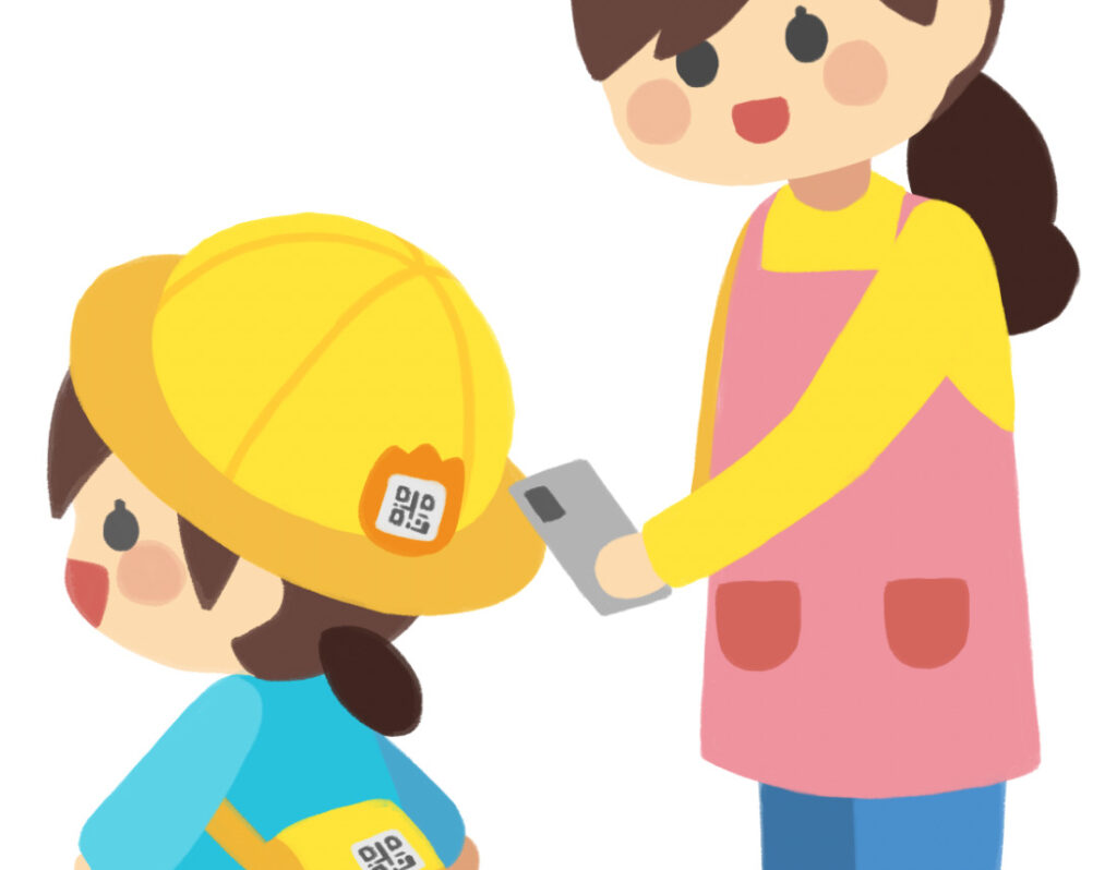 ①事前に園児の名札やカバンにQRコードを付ける、貼る