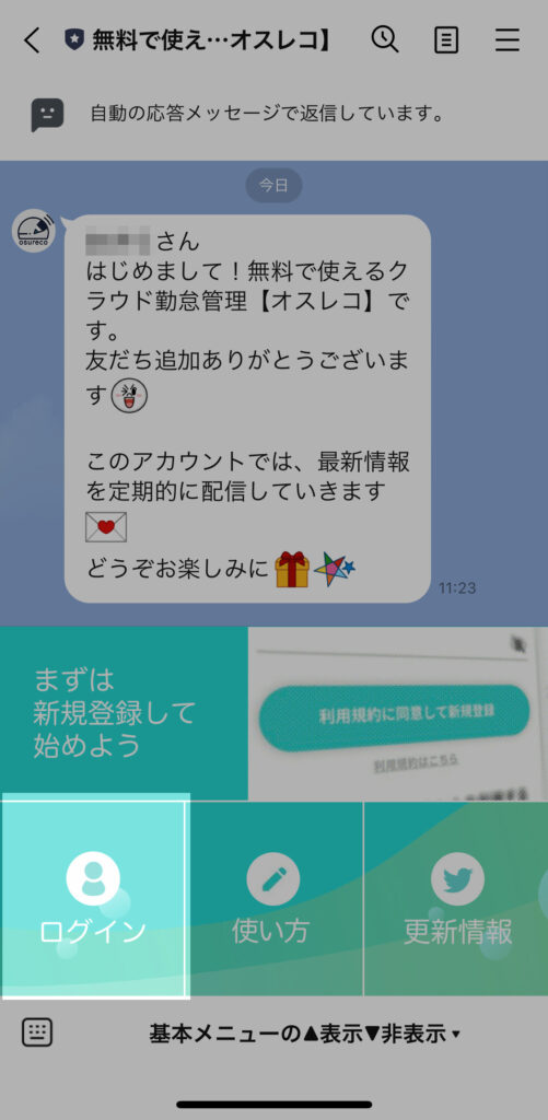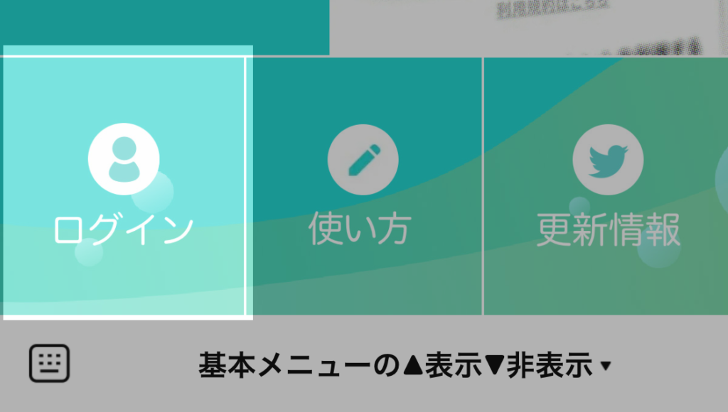 トーク画面に移動するので画面下の基本メニューにある「ログイン」を押します。
