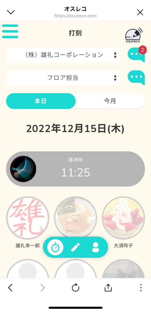 オスレコの打刻画面が表示されるのでいつも通りに使用します。