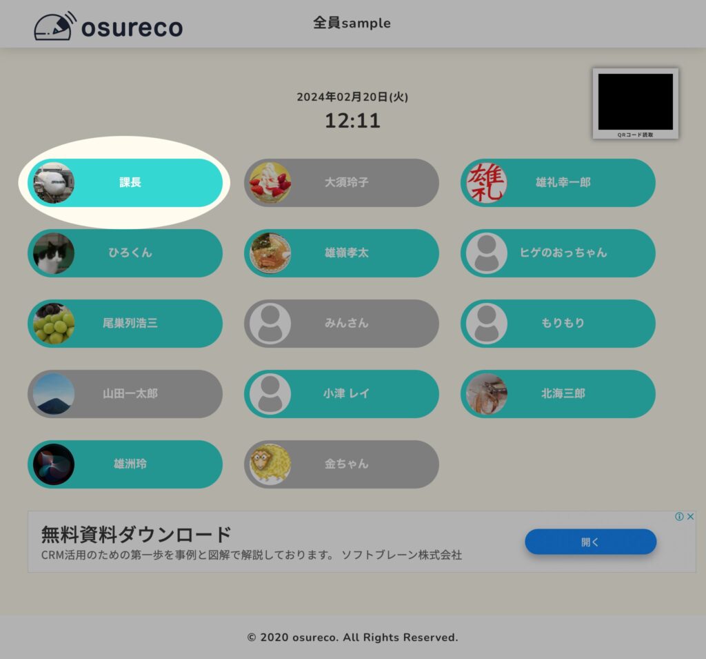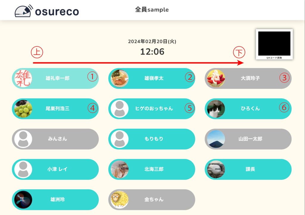 最初に登録した人から順に右に並んでいきます。(下図参照)