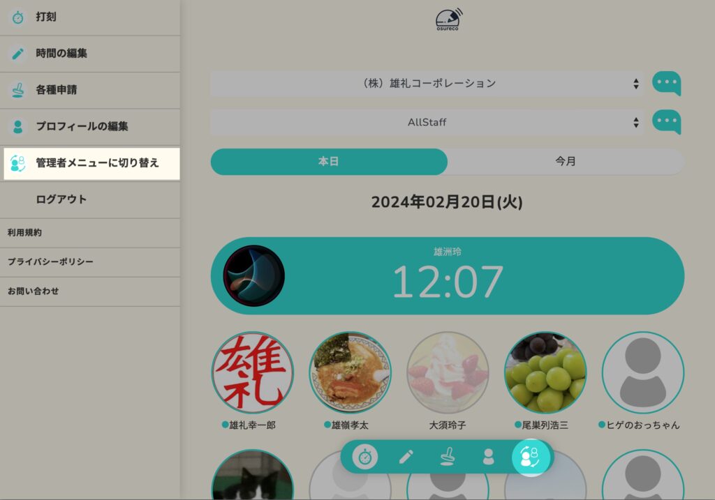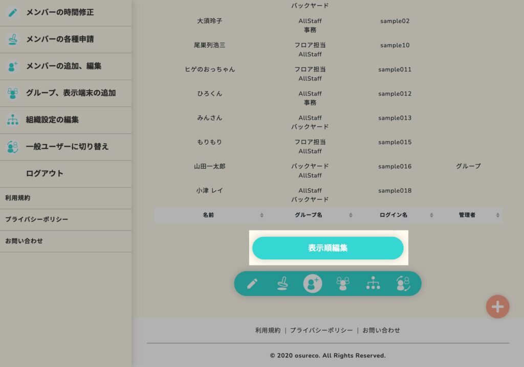 共用端末やスマホで表示される各メンバーの並び順を変更する方法の説明です。