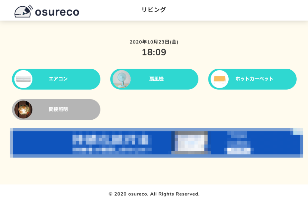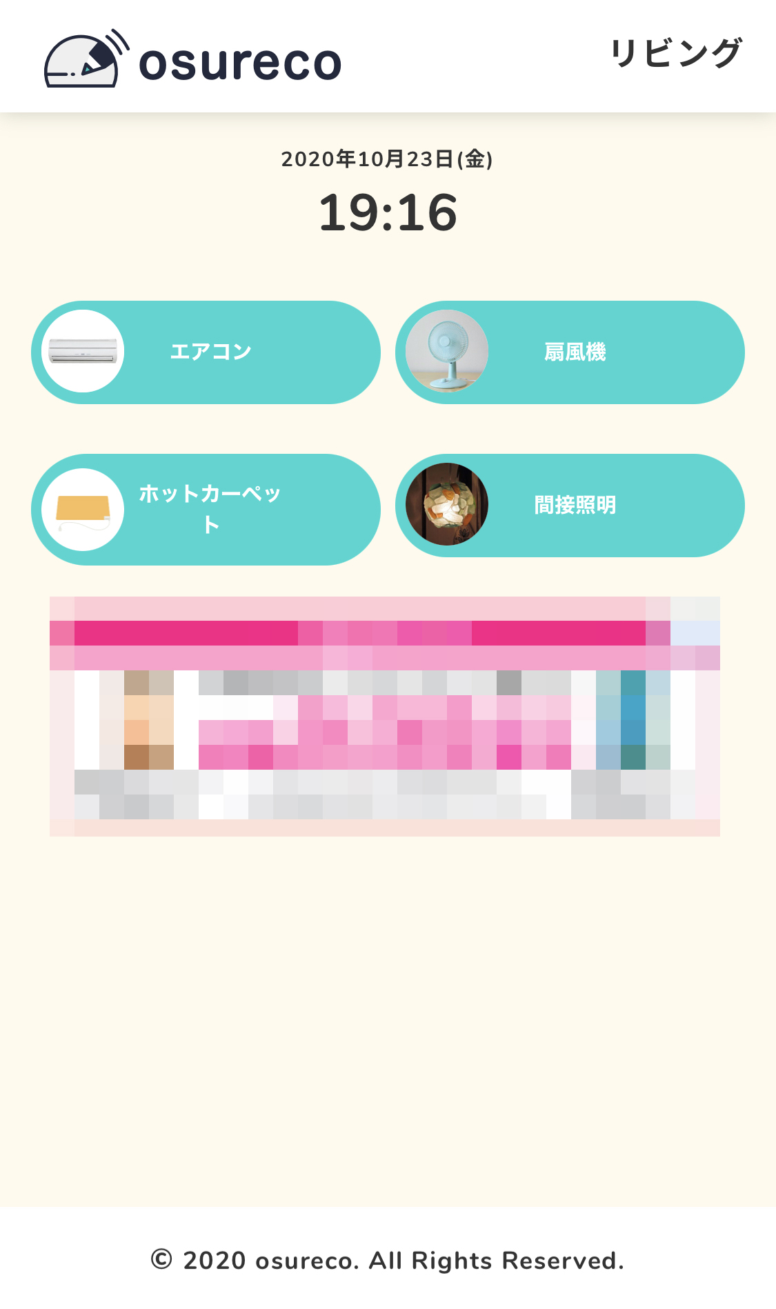 それぞれの家電にわかりやすいアイコンを設定し、共用端末も設定してタブレットをリビングや寝室に設置すると、以下のキャプチャの様に家電の集中コントロールをさせる端末として表示することが出来ます。