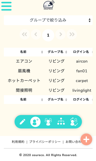 「メンバーの追加、編集」から操作に必要な家電の数分だけメンバーを追加します。