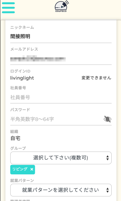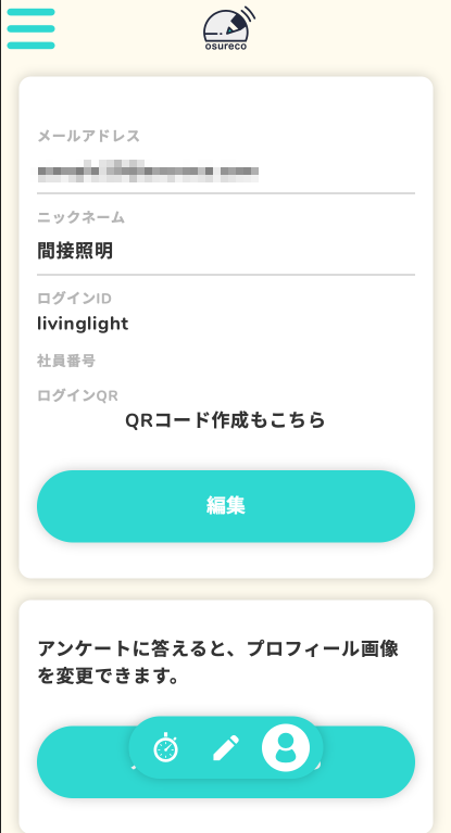 家電の追加がし終えたら一旦ログアウトして、今度は1つ1つの家電のアカウントでログインし、「プロフィールの編集」画面を開き、「編集」ボタンを押します。