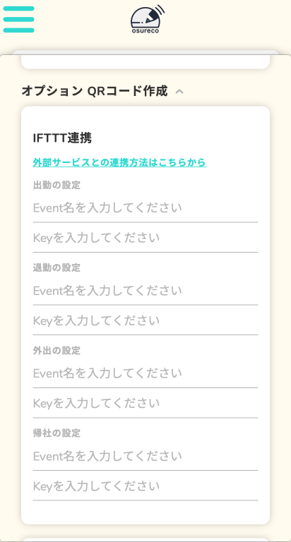 「オプション QRコード作成」を開き、Event名とKeyを入力します。